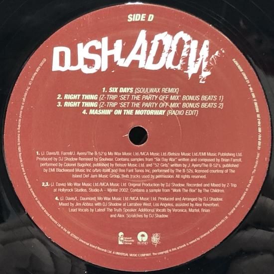 DJ SHADOW / MASHIN' ON THE MOTORWAY / 12inch(Q)