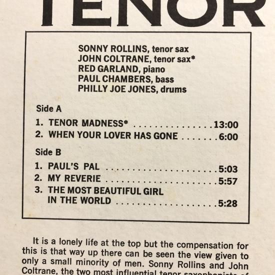 タイトル TENOR MADNESS / テナー・マッドネス