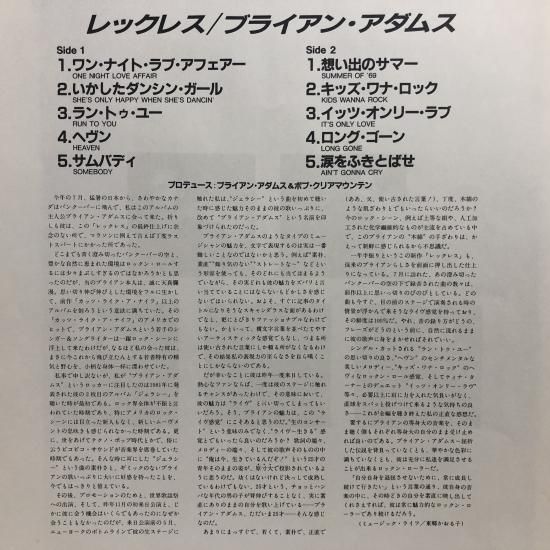 ブライアン・アダムス / レックレス / LP(W)