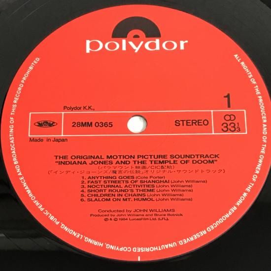 ¥¸¥ç¥ó¡¦¥¦¥£¥ê¥¢¥à¥¹ JOHN WILLIAMS / ¥¤¥ó¥Ç¥£¡¦¥¸¥ç¡¼¥ó¥º ËâµÜ¤ÎÅÁÀâ INDIANA JONES AND THE TEMPLE OF DOOM / 28MM 0365 / LP