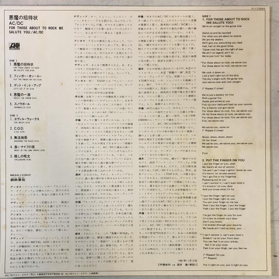 AC/DC / 悪魔の招待状 FOR THOSE ABOUT TO ROCK WE SALUTE YOU / LP P-11068A
