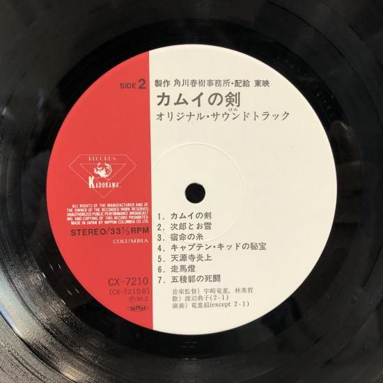 「カムイの剣」 オリジナル・サウンドトラック 歌:渡辺典子 / LP CX-7210