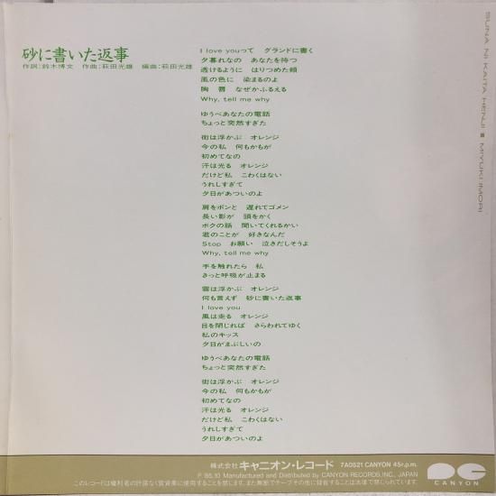 SIDE B 「砂に書いた返事」収録