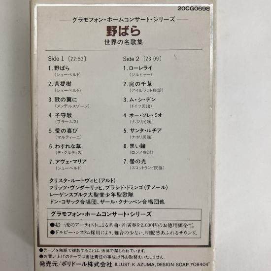 グラモフォン・ホームコンサート・シリーズ / 世界の名歌集 野ばら / 20CGO698 / カセットテープ