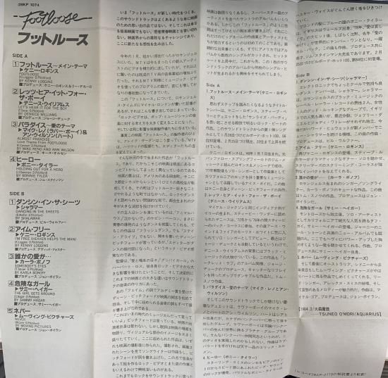 タイトル 「フットルース」オリジナル・サウンドトラック