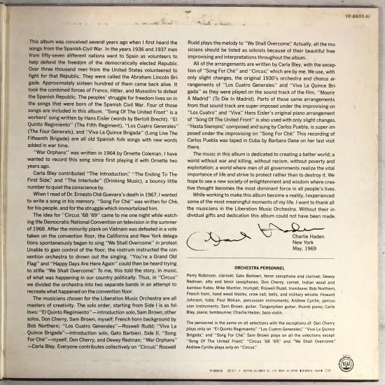 チャーリー・ヘイデン CHARLIE HADEN / リベレーション・ミュージック・オーケストラ LIBERATION MUSIC ORCHESTRA / LP YP-8600