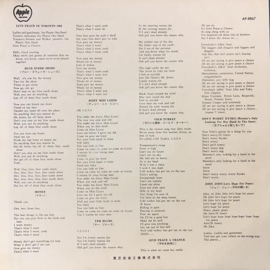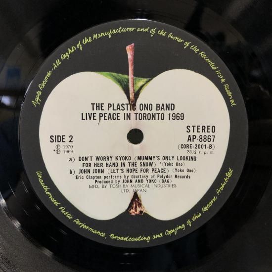 ジョン・レノン&オノ・ヨーコ・ザ・プラスティック・オノ・バンド / 平和の祈りをこめて 1969 LIVE PEACE IN TORONTO 1969 / LP AP-8867