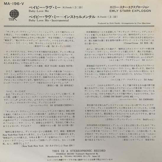 エミリー・スター・エクスプロージョン EMILY STAR EXPLOSION / ベイビー・ラヴ・ミー BABY LOVE ME / MA-196-V / EP