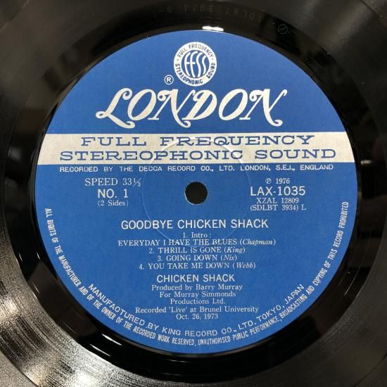 チキン・シャック CHICKEN SHACK / さらばチキン・シャック GOODBYE CHICKEN SHACK / LP LAX-1035